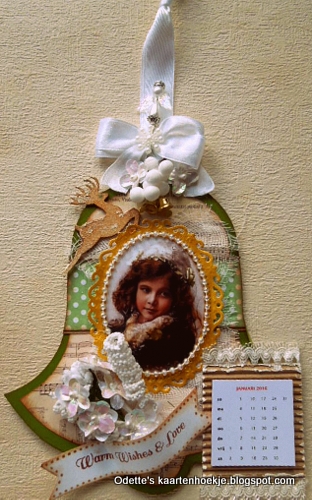 Het kalendertje heb ik op golfkarton gelegd waar ik een kantje aan de randen gelegd heb.